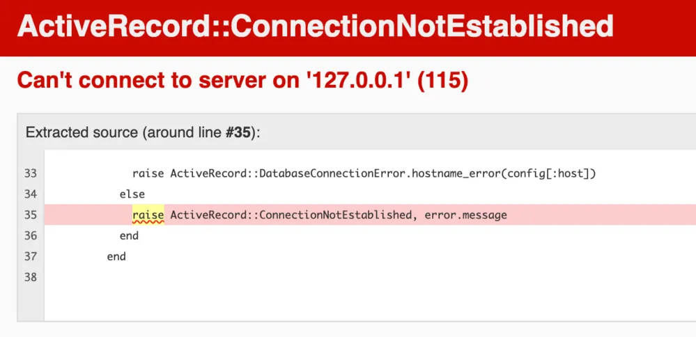 Gemfileが更新されたため再度bundle installするためにdocker compose build その後にdocker compose up -dでlocalhost:3000にアクセスすると以下の画面